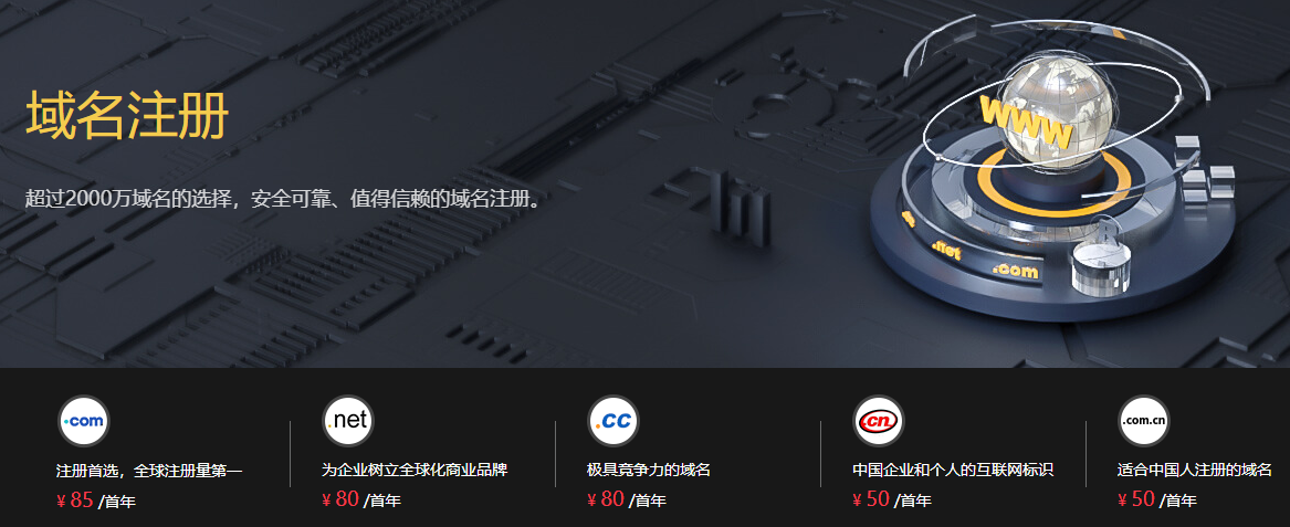 点击立即注册域名