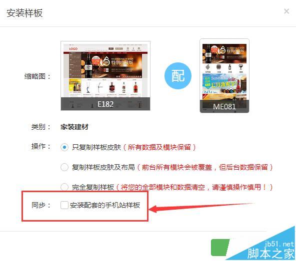 第三、 安装样板的时候,选择“同步安装配套的手机站样板 ”,即实现电脑站、手机站同步。