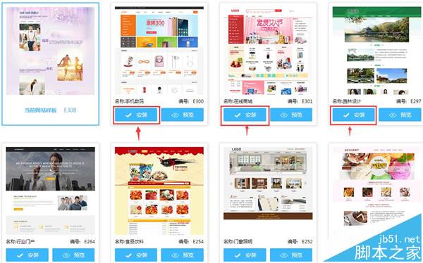 第二 、点击“建站管理 ”,进入网站编辑后台,在众多样板中选择一个喜欢的样板,进行安装。