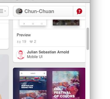 Infinite Scroll架构也相对扁平,适合展示相同阶层架构的东西,而图片就是最好的内容物,因为视觉的信息比较文字更快被人所接收,我们总是能很扫射完图片,Pinterest就是利用Infinite Scroll的特点,不停给予各式图片,供设计师快速找寻灵感、给予源源不绝的刺激。