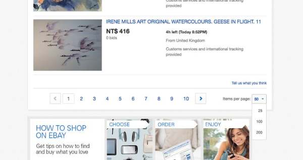 eBay:默认50个商品,用户可以自由选择展示数量。