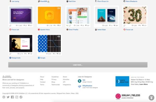 当滚轮滚动时,页面会自动加载更多内容,把Footer再往下推,消失于窗口中。常常有这样的经验,原本想要阅读Footer的信息,结果看到一半,就被加载的信息推走,我又往下scroll,然后又再度被推走,整个无法控制。有兴趣的朋友,可以试着和Dribbble Designers页面,与Footer玩追逐战。