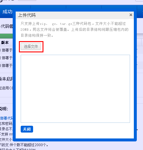2 上传代码 登陆你的SAE应用管理后台,点击“代码管理”,创建一个新版本。