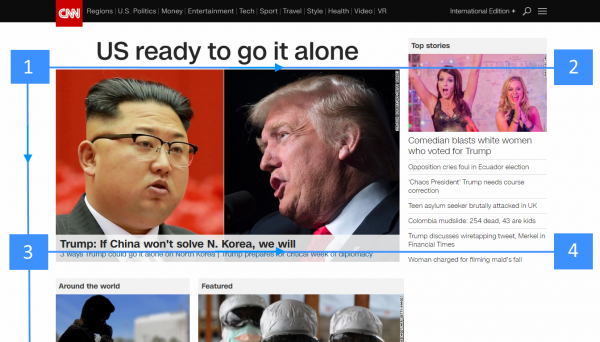 我们浏览内容的方式被训练为从左上角开始水平浏览,回到左侧向下扫视找到兴趣点,继续横向浏览。