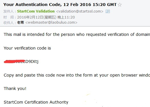 这里我们选择一个可以用的邮箱然后点击Send Verification Code按钮发送邮件,然后收到的激活码输入后点击Validation按钮验证。这里需要注意的,如果我们没有域名邮局,会自动检索WHOIS邮箱,如果我们有隐私保护的,那可以先取消,等接受到后再开启隐私保护。这里我用的是"webmaster@laobuluo.com"域名邮局,所以选择后接受验证。
