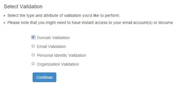 这里我们需要用到域名中,那就选择Domain Validation选项。