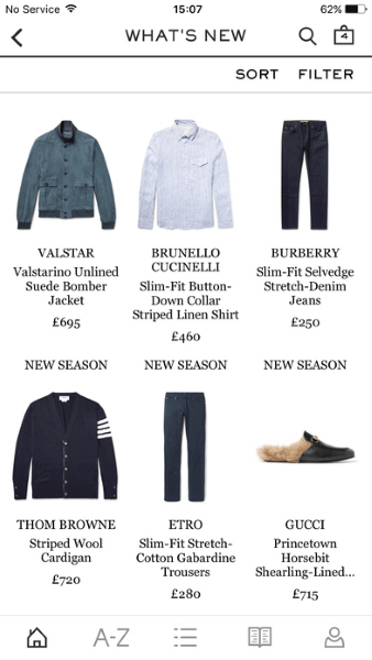 而对于相对产品信息更少的产品而言,栅格式的布局则是更好的选择。想服装这样的产品,少有需要借助文本式的产品信息来呈现其特征的,更多还是依靠图片和视觉设计,所以这类产品需要栅格式的布局,而不是冗长的内容信息。