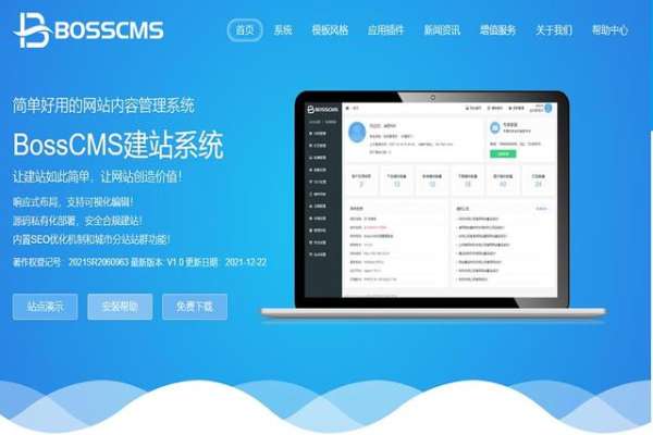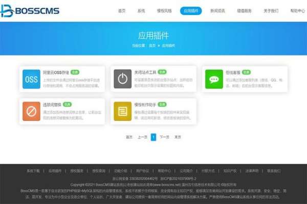BossCMS是一款基于自主研发PHP框架+MySQL架构的内容管理系统,能够满足各类网站开发建设的需求。系统开源、安全、稳定、简洁、易开发、专注为中小型企业及政企单位、个人站长、广大开发者、建站公司提供一套简单好用的网站内容管理系统解决方案。BossCMS操作简单、功能完善、安全稳定、支持多语言、支持可视化编辑、文件存储(本地或外部存储)、自定义页面URL、内置SEO搜索引擎优化机制、广告违禁词、城市分站等功能。官网提供了大量的网站模板,可以让您不需要任何的专业技术就能轻松搭建您的网站,易操作、易上手、快捷方便的后台操作让让新手能够快速搭建一个符合流量站的网站。