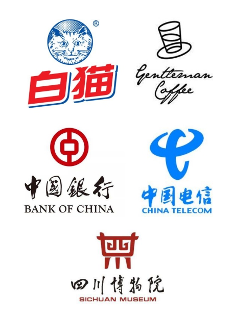而中国银行、中国电信和四川博物院则是通过提取名称中的一个字来进行图形设计。