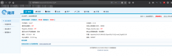 我们来验证下这个网站漏洞,搭建本地的环境,下载seacms最新版本,并使用apache+php5.5+mysql数据库环境,我们前台注册一个普通权限的用户,使用抓包工具对post的数据进行截取,我们来覆盖cfg_user的值来进行管理员权限的赋值操作。我们只要赋值cfg_user不为0,就可以一直保持后台的登陆状态。我们直接去访问后台的地址,就可以直接登陆进去。截图如下: