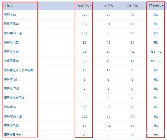 关键词也全都是关于“黑厚学”的,而且排名非常不错。