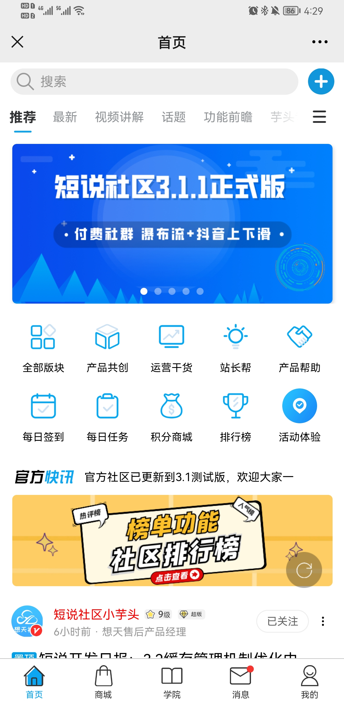 短说3.1版本开始支持付费社群和短视频体验优化。实现了多终端跨终端的仿抖音形式。