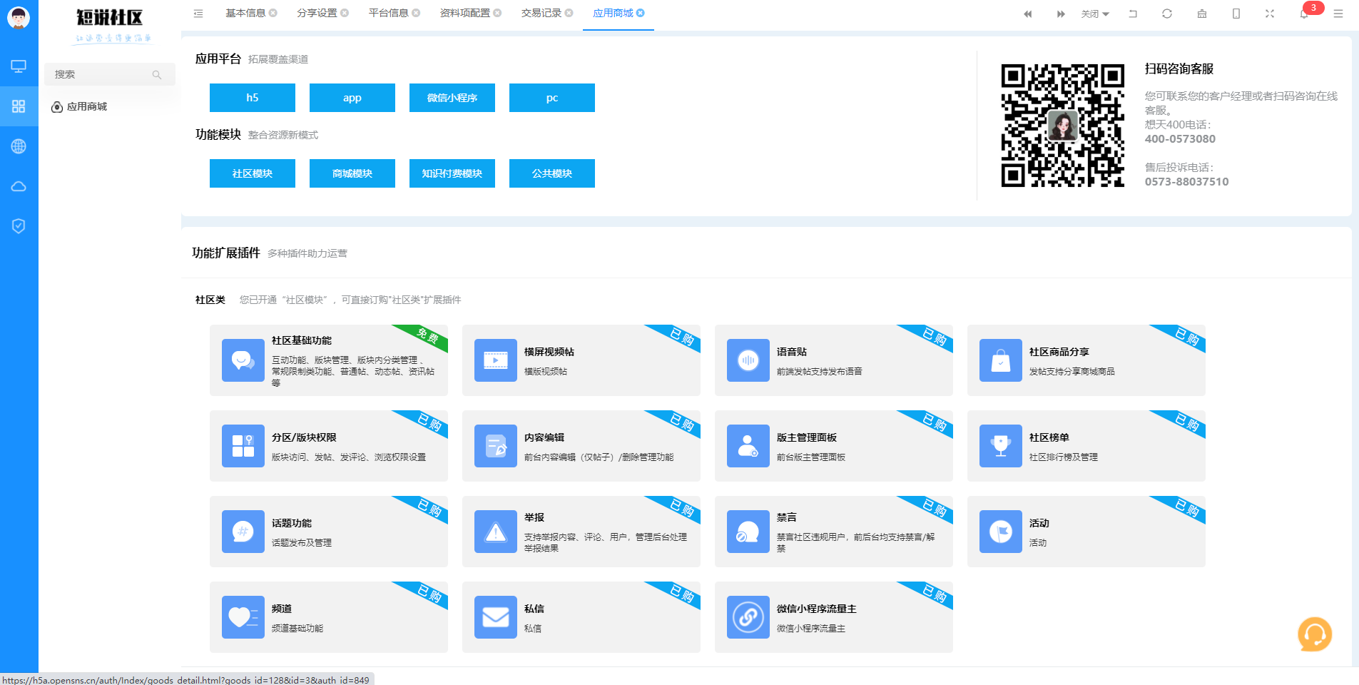 目前短说官方网站公布了价格,电商和知识付费模块未在官方公布价格,需要咨询客服后获得。