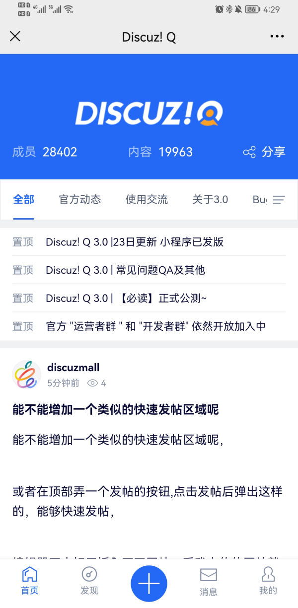在支持方面,dzq提供群内官方人员的不定期回复,但不是义务解答。官方不提供商业级的配套支持。需要使用者完全自助,好在官方有配套的文档材料可以提供。