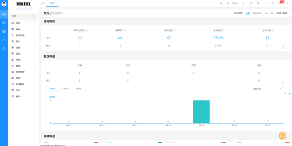 后台功能方面,dzq立足于开源系统,简单干练,没有多余的功能。而短说则有更细的功能管理分类。笔者自己搭建了一个dzq,同时体验了短说官方提供的演示站,对两者的后台功能进行截图。