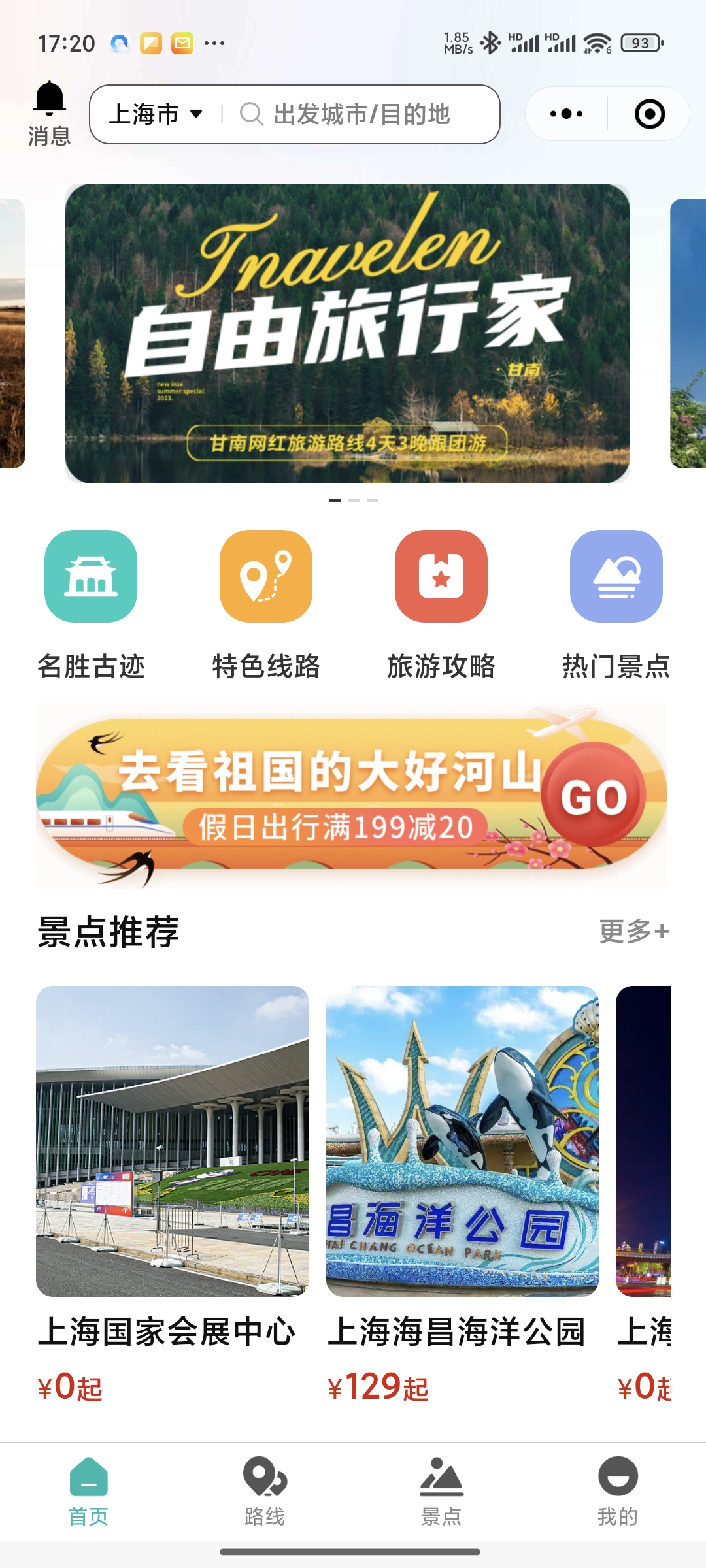 旅游小程序定制开发案例,包括景点推荐、路线推荐、可以进行在线支付,预定旅游路线。活动报名,也支持分销赚佣金等。
