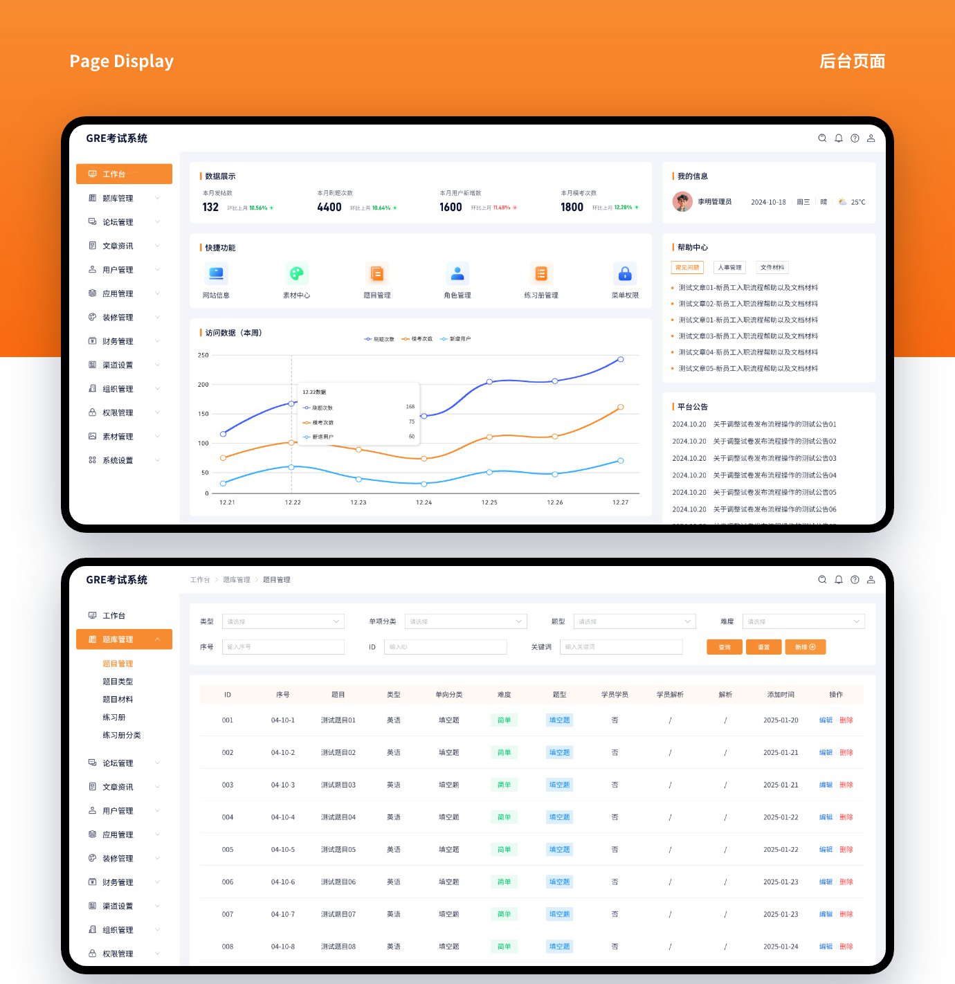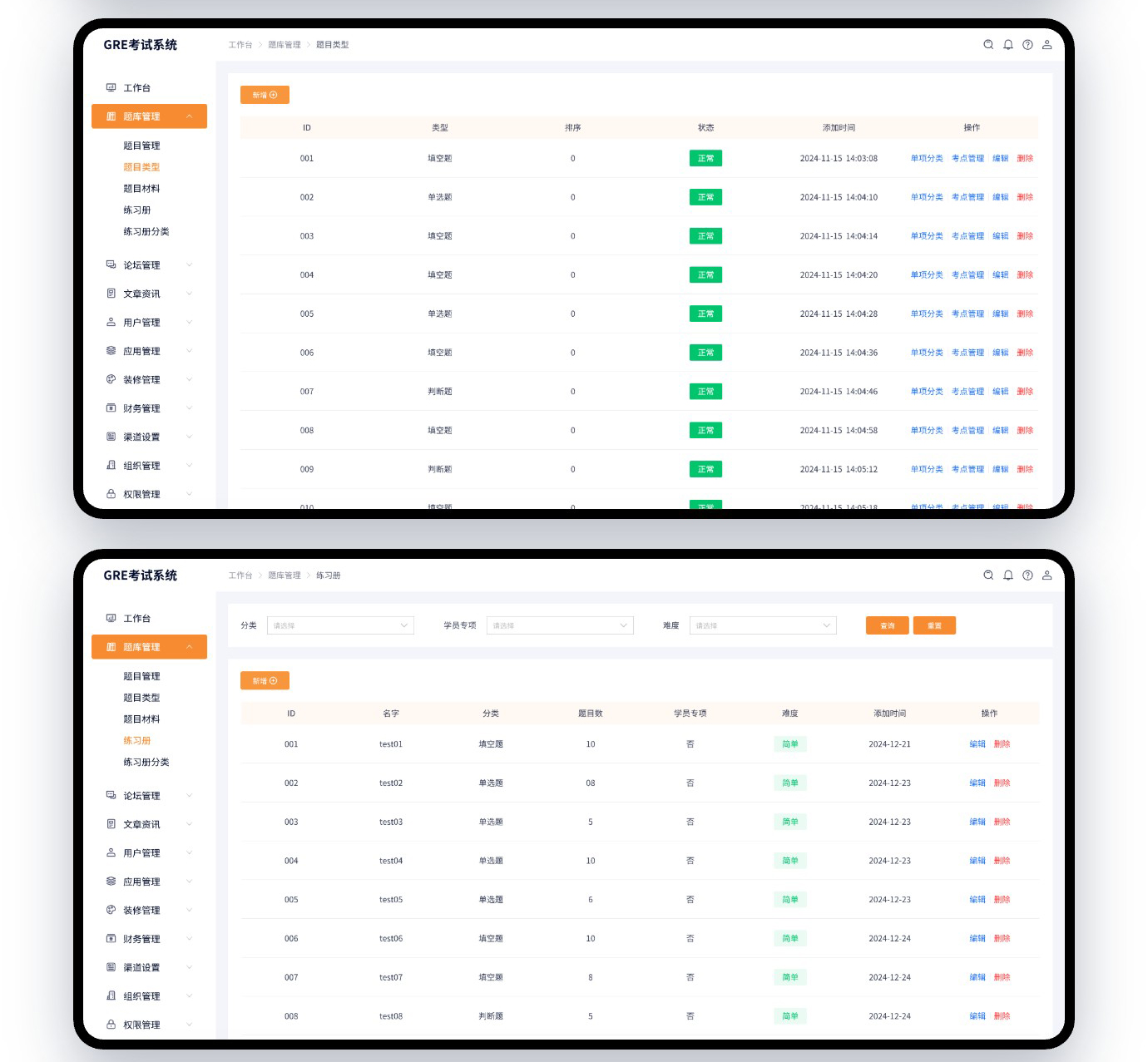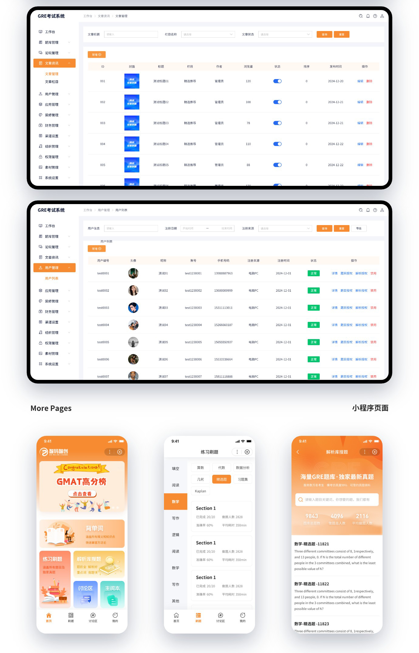 这是给客户开发的一套GRE考试系统,是去年找我们开发过GMAT考试系统,觉得我们做的还是可以的,后面又找我们做了GRE考试系统。这次在GMAT的基础上增加了背单词的功能。整套系统功能还是算比较强大的了。